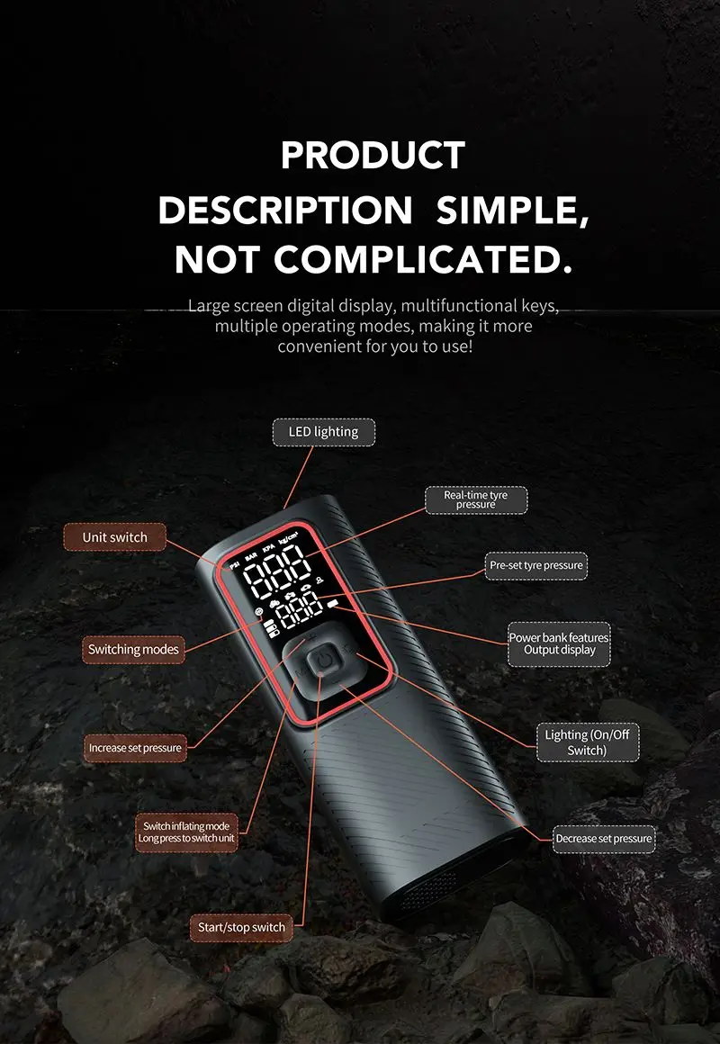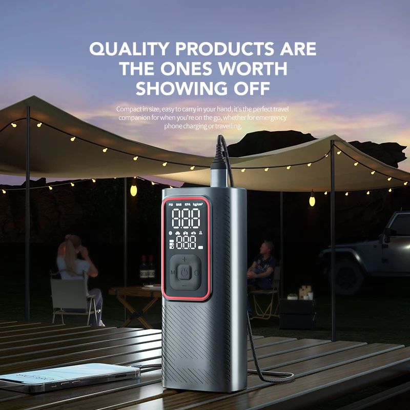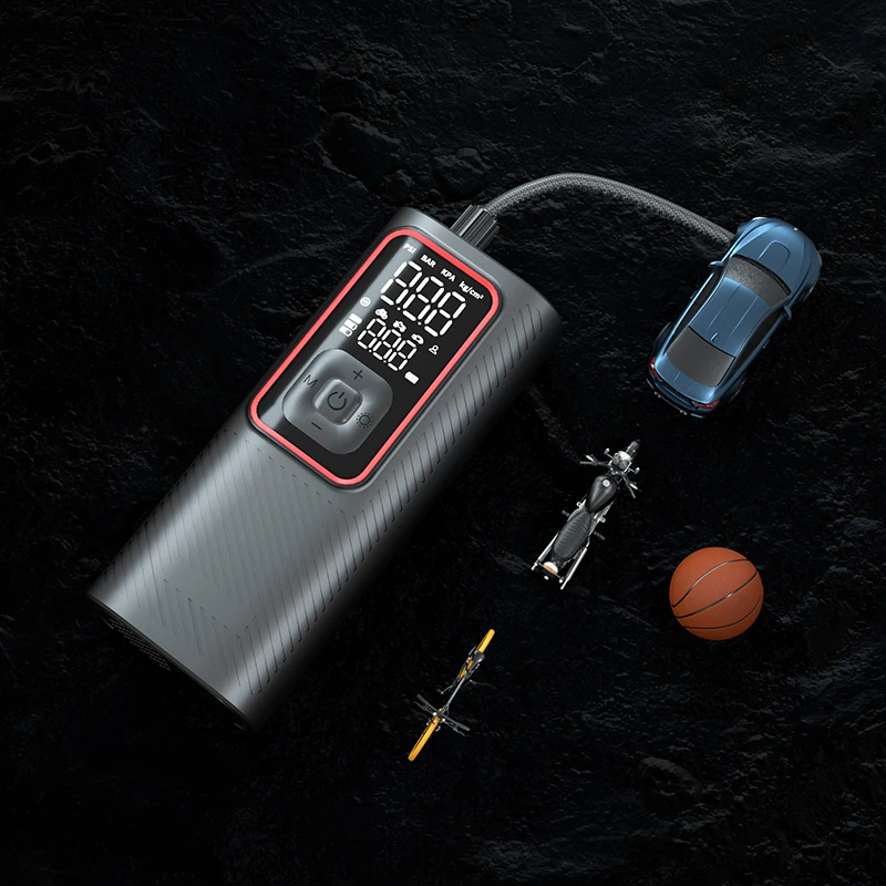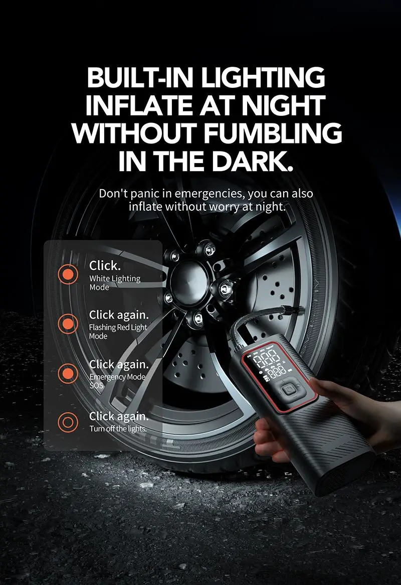 Nafukovač pneumatik pro automobily 12V DC nafukovač s číslicovým manometrem a nouzovým LED osvětlením