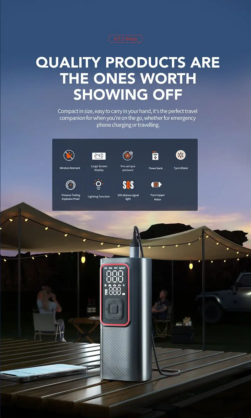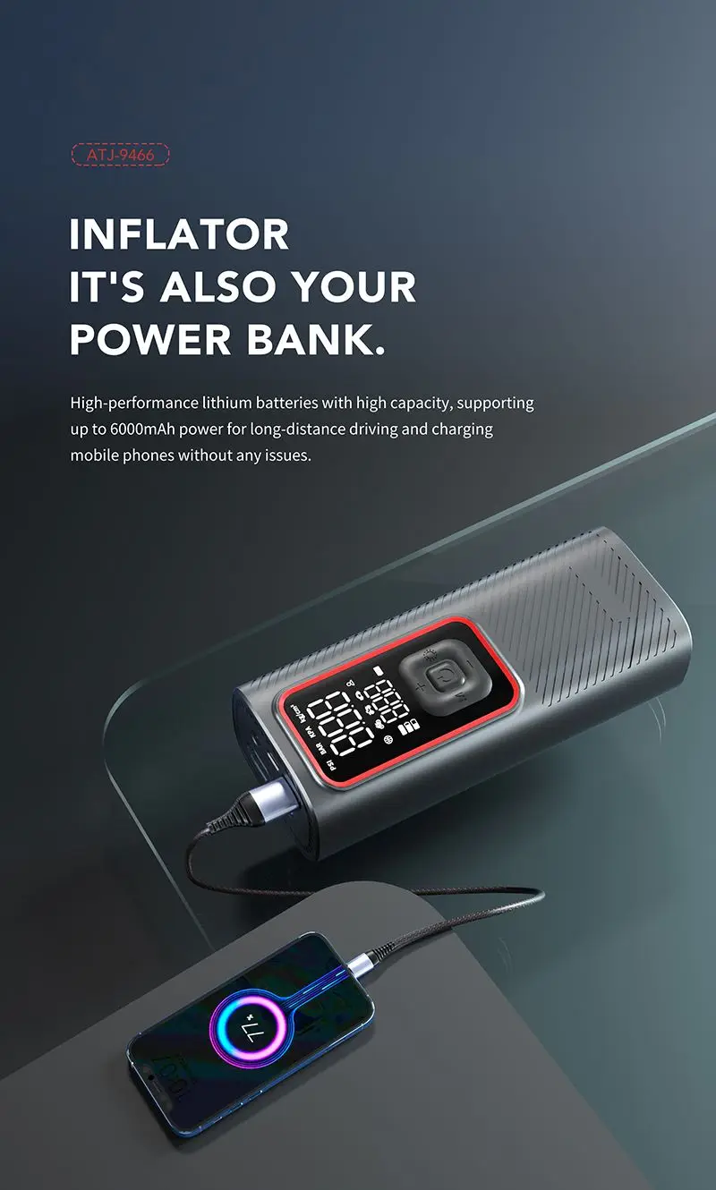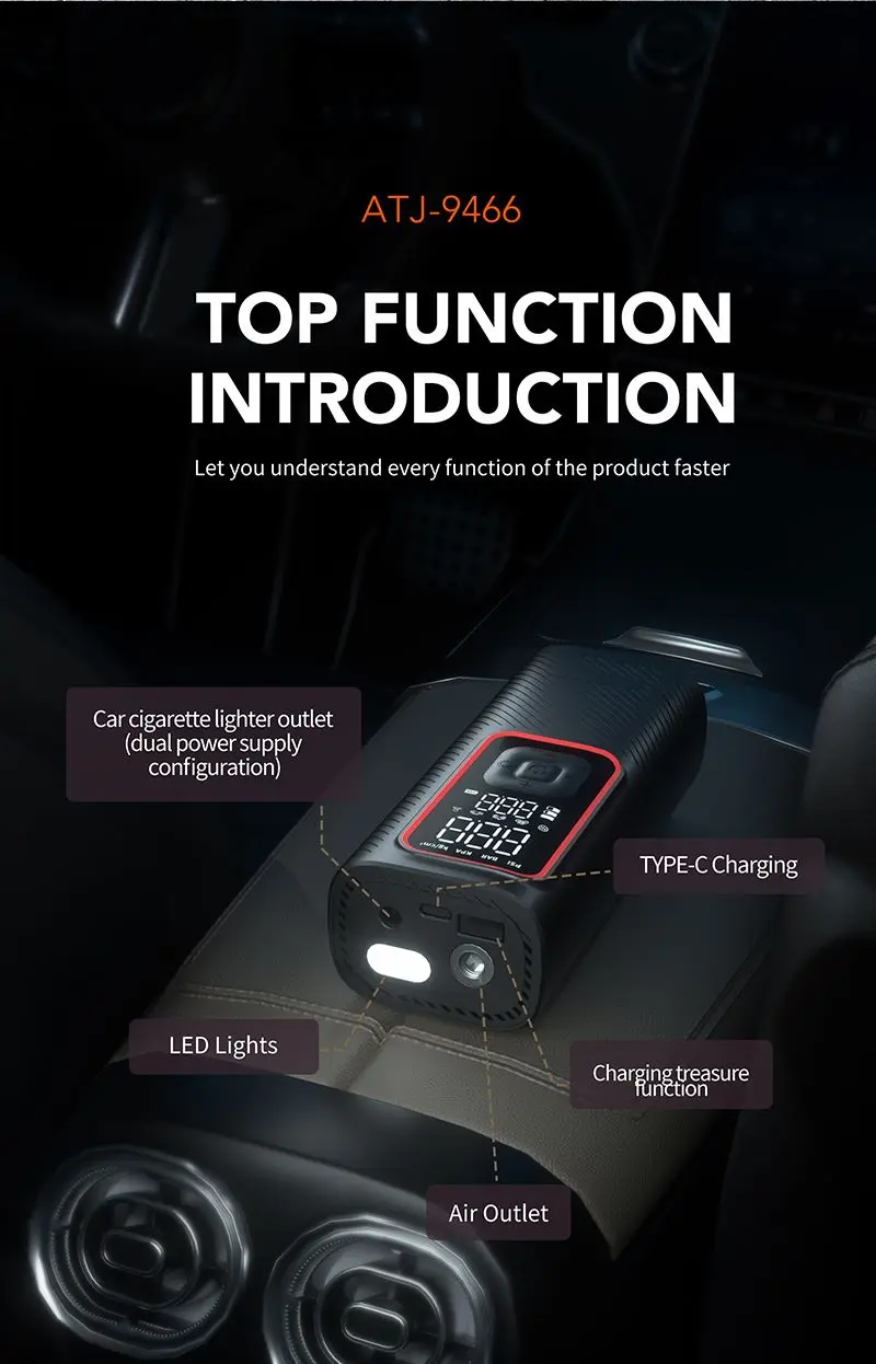 Nafukovač pneumatik pro automobily 12V DC nafukovač s číslicovým manometrem a nouzovým LED osvětlením