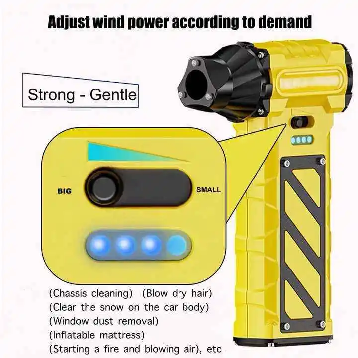 Ventilateur à force vortex avec casse-vitre, ceinture de sécurité rechargeable, compact, vitesse réglable jusqu'à 110 000 tr/min pour nettoyage PR