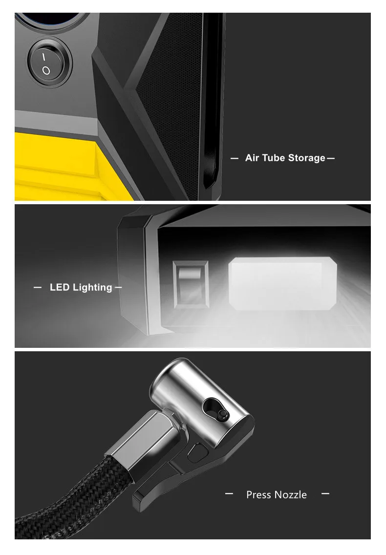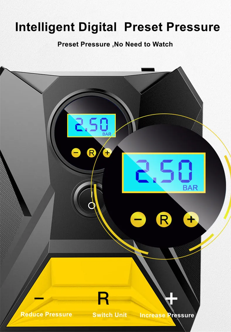 The 8002 Portable Car Air Compressor is a compact and powerful tire inflator for quick and easy inflation on the go. It comes with a rechargeable battery, a digital display for accurate pressure readings, and an auto-stop feature to prevent over-inflation.