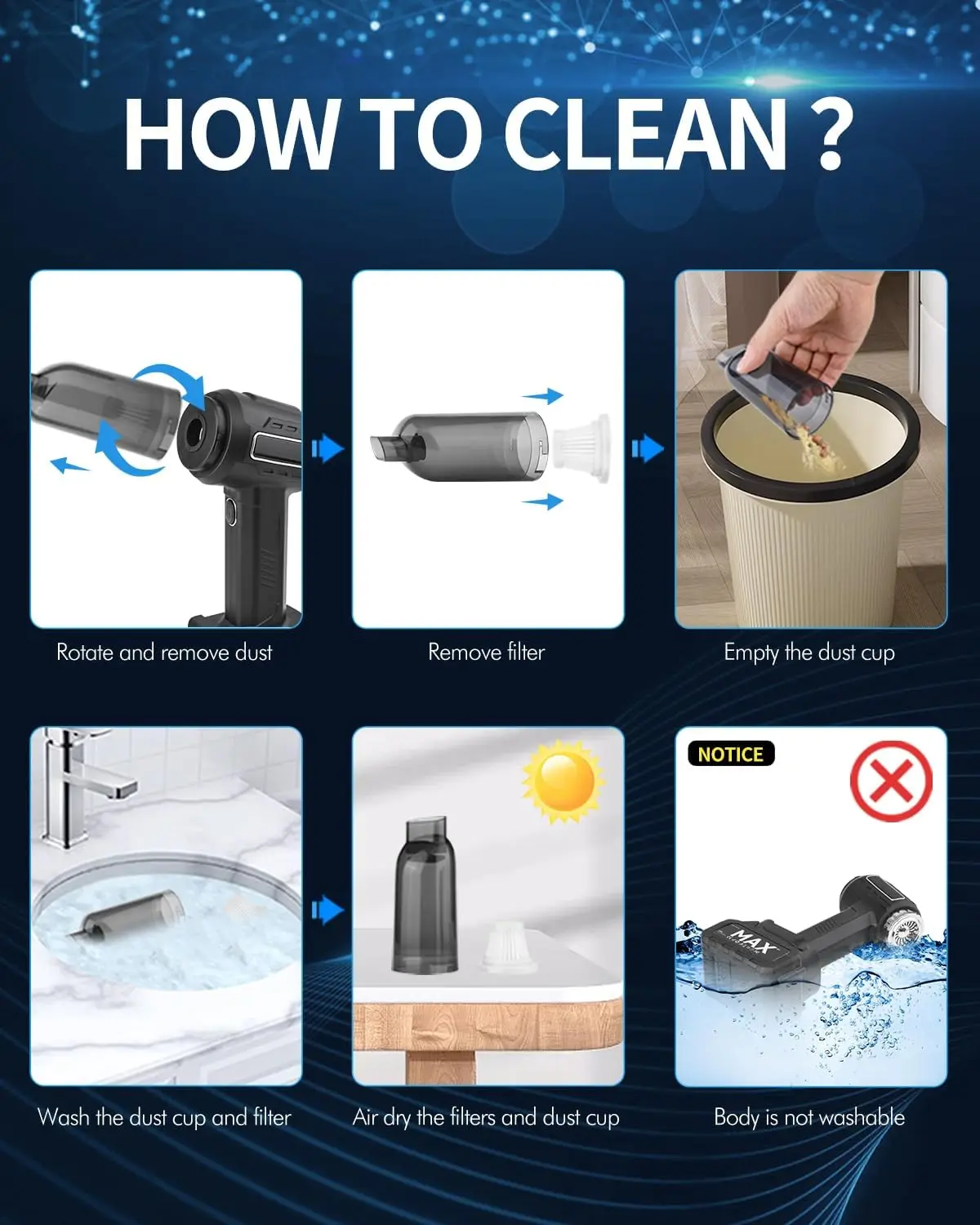 Is it a pain in the ass to clean a car? Enter Hifly Handheld wireless car vacuum cleaner! Shredded paper debris in the seat gap or dust decoration on the carpet, can be easily handled, so that you no longer worry about cleaning. Powerful suction to blast away tough spots. Apart from cars, it can also be used for home, office, etc., different uses, is to improve the quality of life cleaning artifacts.